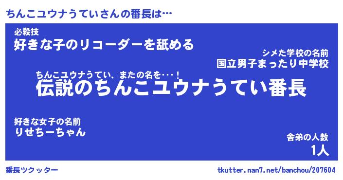 | 恥ずかしいあだ名 | 『プリティーちんこユウナうてい』 |