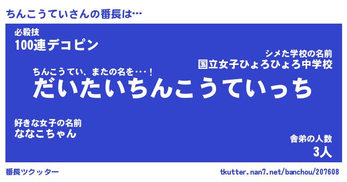 | ポケモン風あだ名 | 『チンチュウ』『チンコダネ』 |