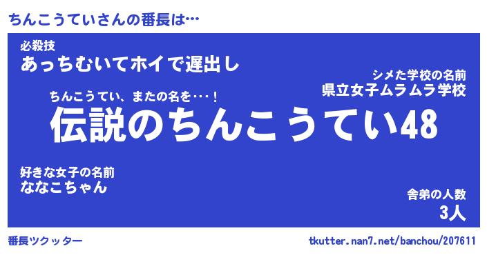 | ピコ太郎風あだ名 | 『チコ史郎』『ピチ四郎』『チン六郎』 |