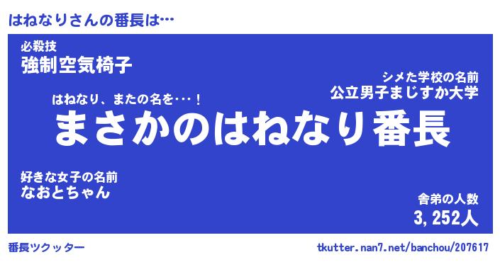 | ヘコむあだ名 | 『はねにー』『牛乳』『はね太郎』 |