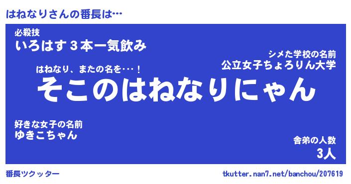 | 肩書あだ名 | 『はねなりCEO』『はねなり大統領』 |