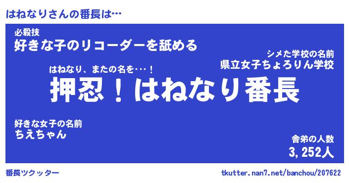 | 意味不明あだ名 | 『ペロリンはねなり』『永久保存はねなり』 |