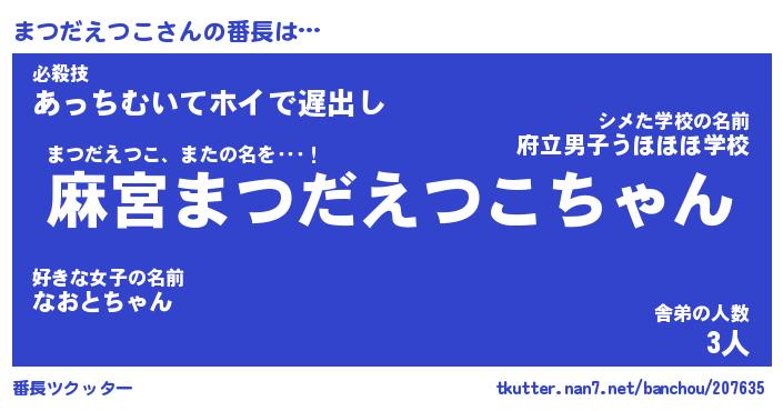 | 2回繰り返すあだ名 | 『まつまつ』『ままつつ』『おらおら』 |