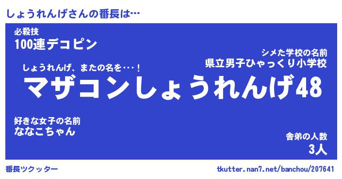 | 伝説のあだ名 | 『封印されしスナイパーしょうれんげ』 |