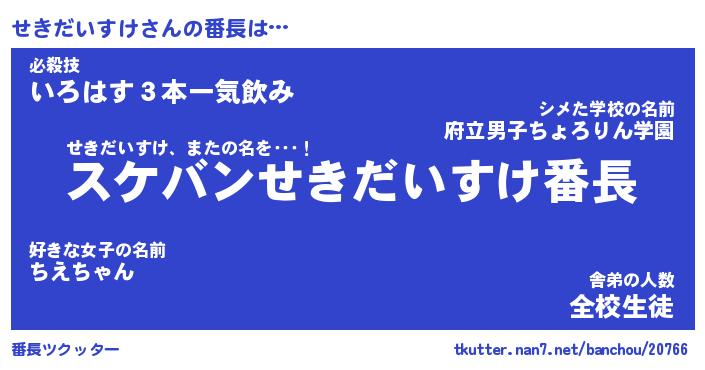 | ヒーロー風カッコイイあだ名 | 『スーパーセキダイスケ』『暗黒騎士セキ』 |