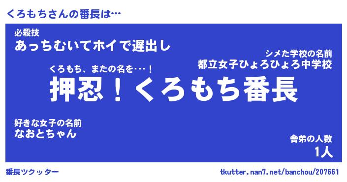 | 意味不明あだ名 | 『ペロリンくろもち』『永久保存くろもち』 |