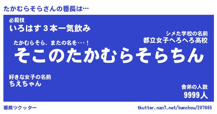 | 伝説のあだ名 | 『不死鳥のスナイパーたかむらそら』 |