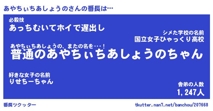 | 欧米人風あだ名 | 『マイケルあやちぃちあしょうの』 |