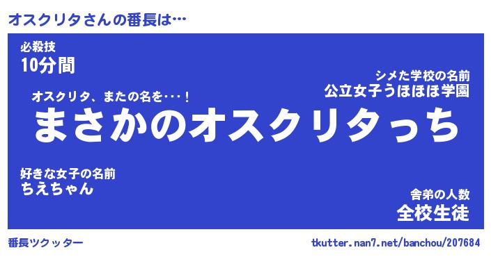 | 男性向けラノベタイトル風あだ名 | 『オスクリタの憂鬱』 |