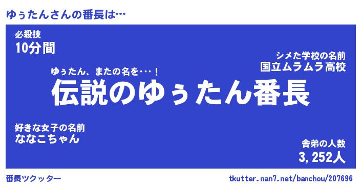| ファンタジー風あだ名 | 『ユゥフェル』『エターナルユゥタンー』 |