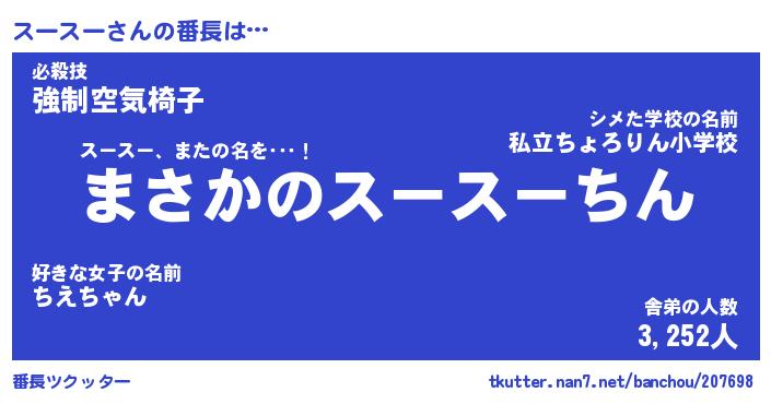 | ピコ太郎風あだ名 | 『スコ十郎』『ピス三郎』『スー八郎』 |