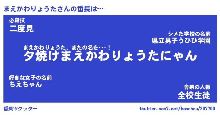 | 2回繰り返すあだ名 | 『まえまえ』『ままええ』『ねちねち』 |