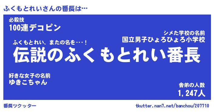 | ヘコむあだ名 | 『ふくにゅー』『つくし』『ふくっぺ』 |