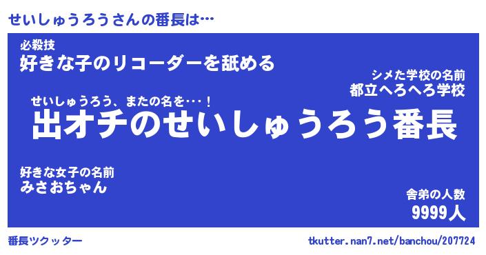 | 伝説のあだ名 | 『伝説のスナイパーせいしゅうろう』 |