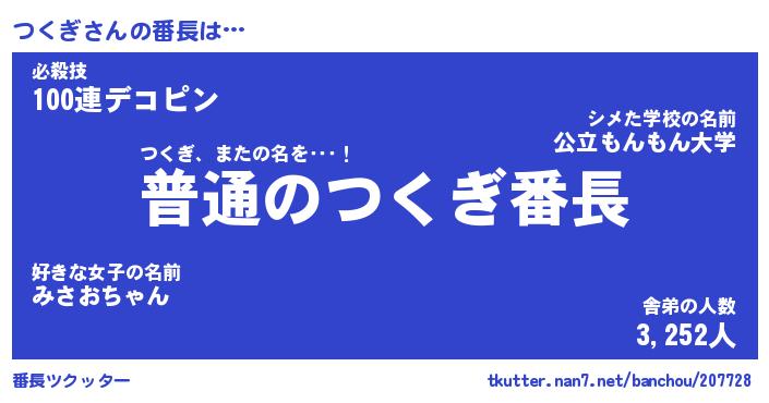| ヘコむあだ名 | 『つくふぇ~』『酢こんぶ』『つくを』 |