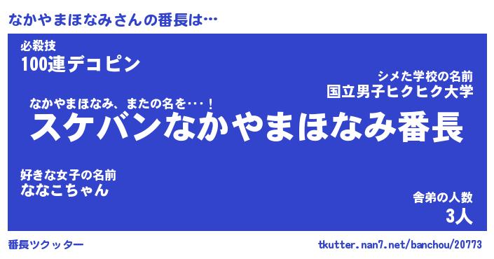 | ピコ太郎風あだ名 | 『ナコ一郎』『ピナ次郎』『ナカ次郎』 |