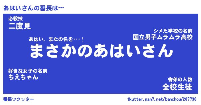 | ヒーロー風カッコイイあだ名 | 『スーパーアハイ』『ウルトラあはいマン』 |