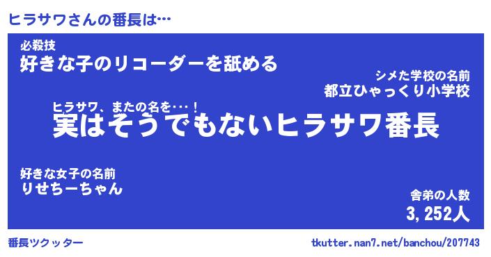 | ヘコむあだ名 | 『ヒラにゅー』『酢こんぶ』 |