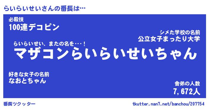 | ヘコむあだ名 | 『らいにー』『つくし』『らいお』 |