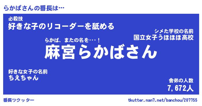 | 2回繰り返すあだ名 | 『らからか』『ららかか』『ぬらぬら』 |