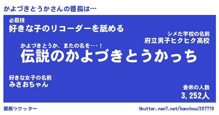 | 伝説のあだ名 | 『伝説のスナイパーかよづきとうか』 |