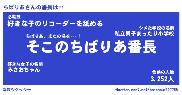 | ヘコむあだ名 | 『ちばにゅー』『酢こんぶ』 |