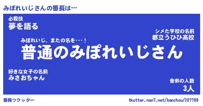 | 男性向けラノベタイトル風あだ名 | 『みぽれいじの憂鬱』 |