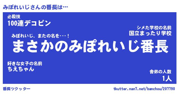 | ヒーロー風カッコイイあだ名 | 『スーパーミポレイジ』『黄金騎士ミポ』 |