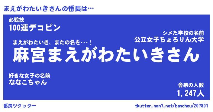 | ピコ太郎風あだ名 | 『マコ太郎』『ピマ史郎』『マエ五郎』 |