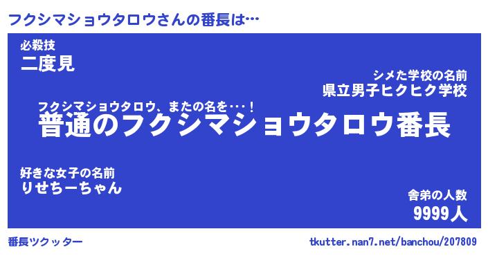 | ヒーロー風カッコイイあだ名 | 『スーパーフクシマショウタロウ』 |