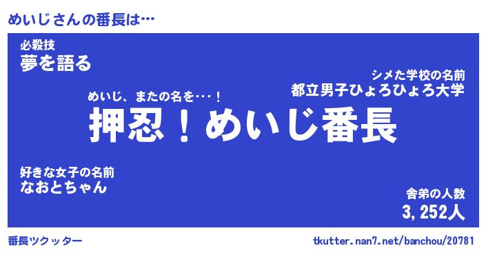 | 肩書あだ名 | 『めいじ社長』『めいじ大統領』 |