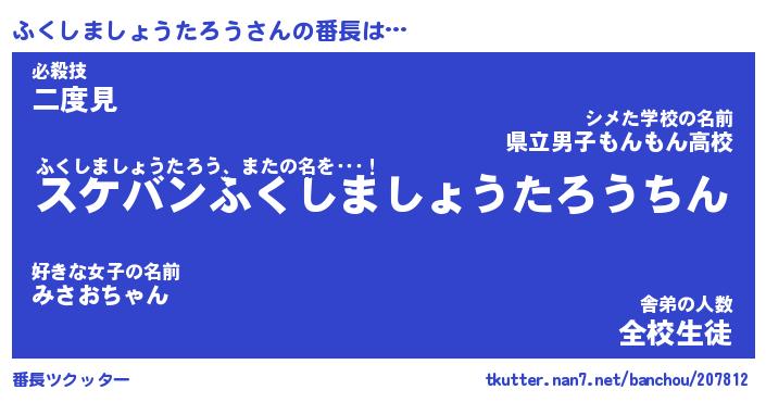 | ヒーロー風カッコイイあだ名 | 『スーパーフクシマショウタロウ』 |