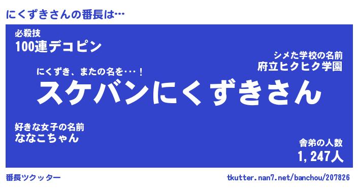 | 意味不明あだ名 | 『ペロリンにくずき』『永久保存にくずき』 |