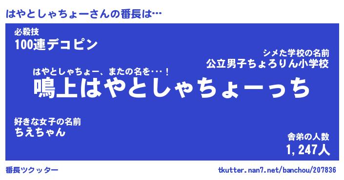 | 伝説のあだ名 | 『封印されしスナイパーはやとしゃちょー』 |