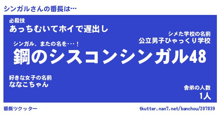 | 意味不明あだ名 | 『ペロリンシンガル』『永久保存シンガル』 |