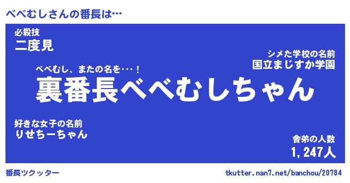 | 意味不明あだ名 | 『ペロリンべべむし』『永久保存べべむし』 |