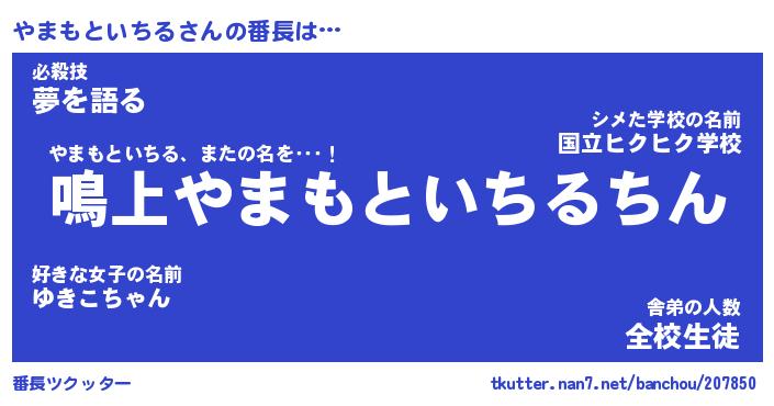 | 伝説のあだ名 | 『封印されし竜騎士やまもといちる』 |