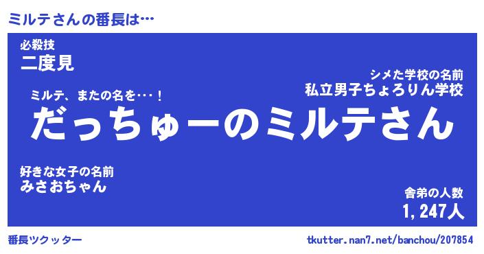 | 意味不明あだ名 | 『ペロリンミルテ』『ミルテフォーエバー』 |
