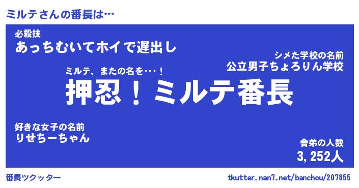 | ヒーロー風カッコイイあだ名 | 『スーパーミルテ』『ウルトラミルテマン』 |