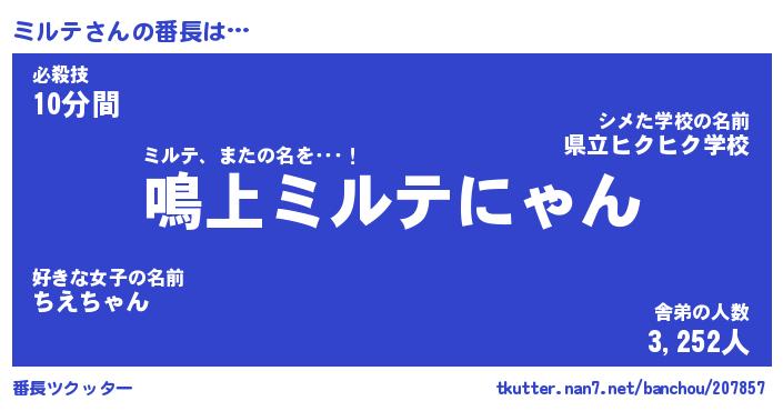 | 意味不明あだ名 | 『ペロリンミルテ』『ミルテフォーエバー』 |