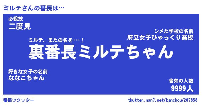 | 肩書あだ名 | 『ミルテ店長』『ミルテ大統領』 |