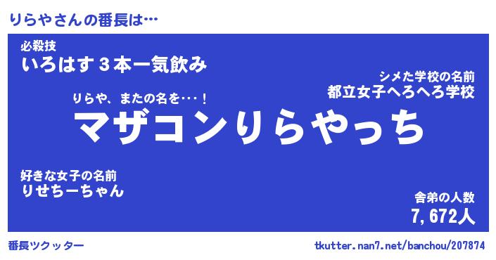 | 意味不明あだ名 | 『ペロリンりらや』『りらやフォーエバー』 |