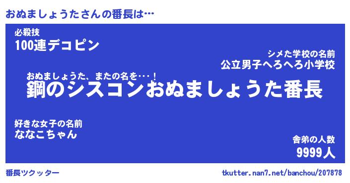 | ピコ太郎風あだ名 | 『オコ一郎』『ピオ六郎』『オヌ十郎』 |