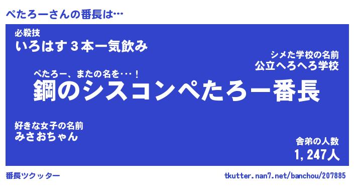| ヒーロー風カッコイイあだ名 | 『スーパーペタロー』『銀牙騎士ペタ』 |