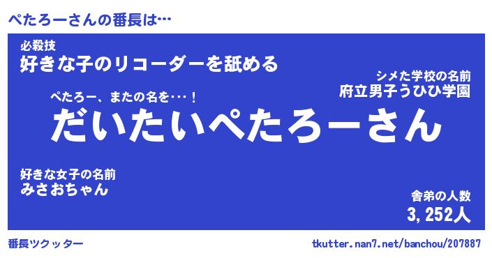 | 意味不明あだ名 | 『ペロリンぺたろー』『永久保存ぺたろー』 |