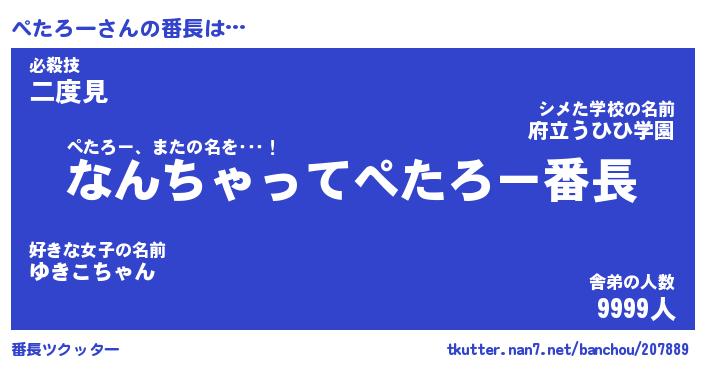 | 意味不明あだ名 | 『ペロリンぺたろー』『永久保存ぺたろー』 |