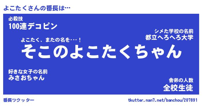 | 欧米人風あだ名 | 『マイケルよこたく』『ウサインよこたく』 |