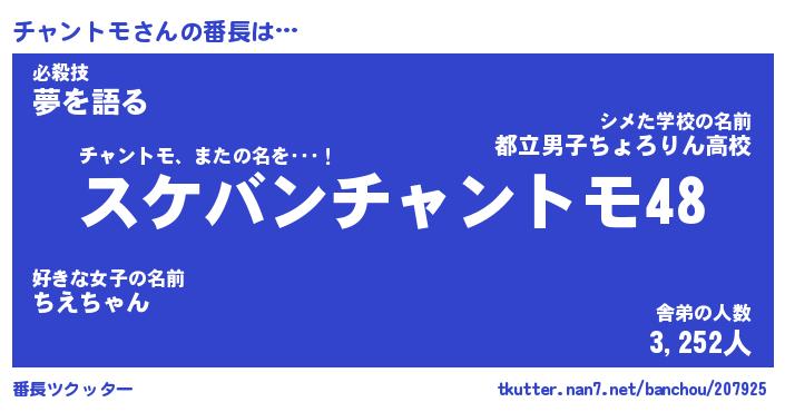 | ヒーロー風カッコイイあだ名 | 『スーパーチャントモ』『魔戒騎士チャ』 |