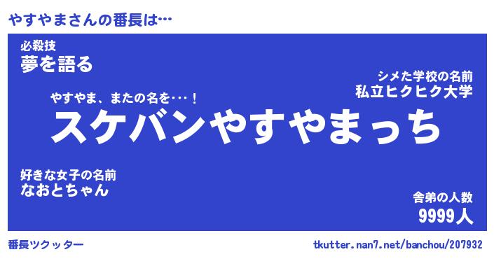 | 欧米人風あだ名 | 『マイケルやすやま』『ウサインやすやま』 |