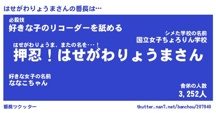| 肩書あだ名 | 『はせがわりょうま店長』 |